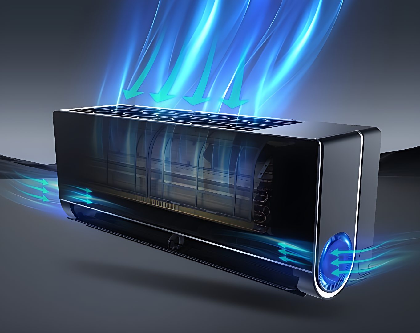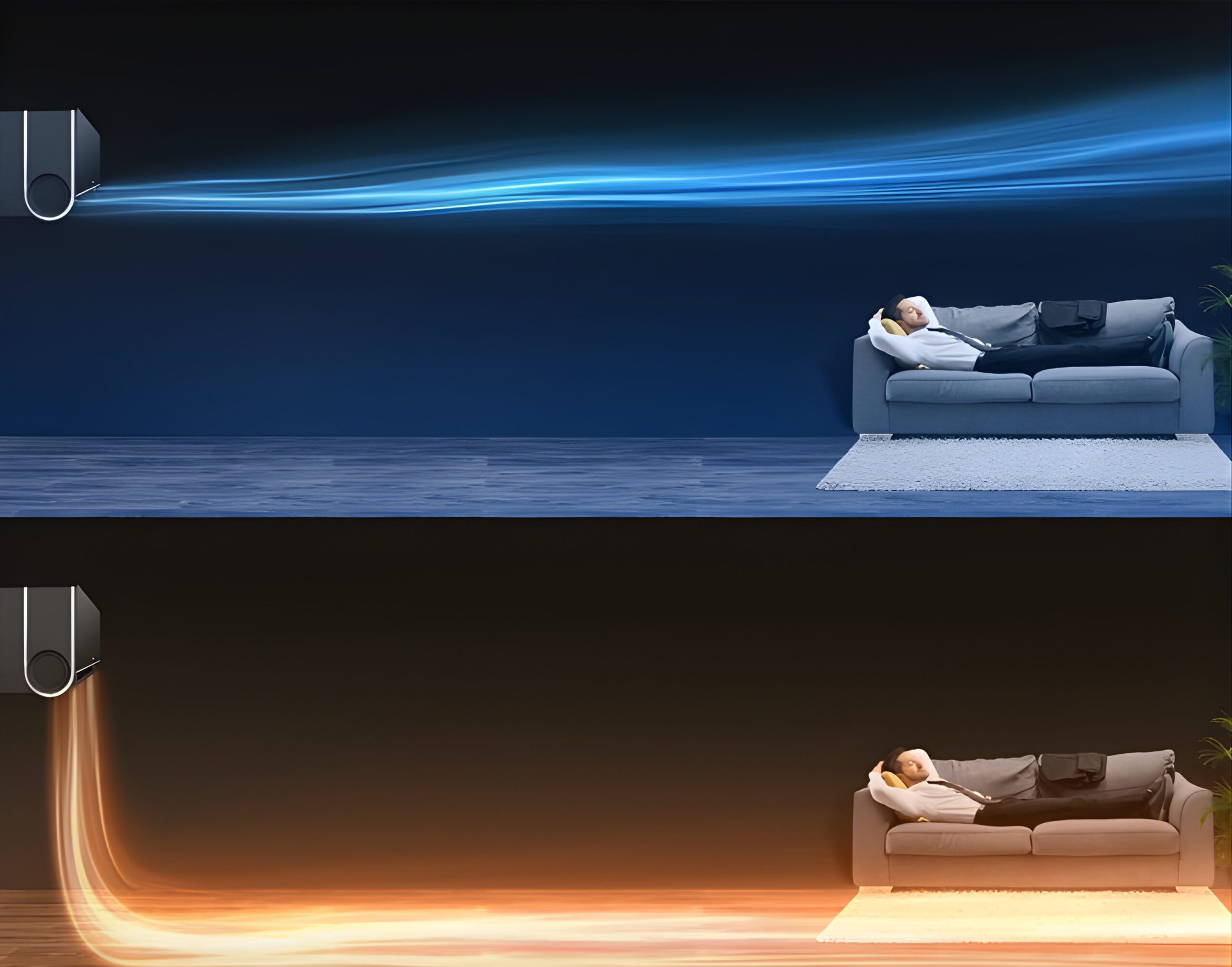 Inženirsko zasnovana pot pretoka zraka povezuje industrijsko velike lopatice prečnega ventilatorja z optimiziranim izhodnim kanalom, kar omogoča večji pretok zraka pri nižji ravni hrupa kot pri podobnih modelih. Tako se poveča doseg in enakomerna porazdelitev zraka po prostoru, naprava pa ostane tiha.