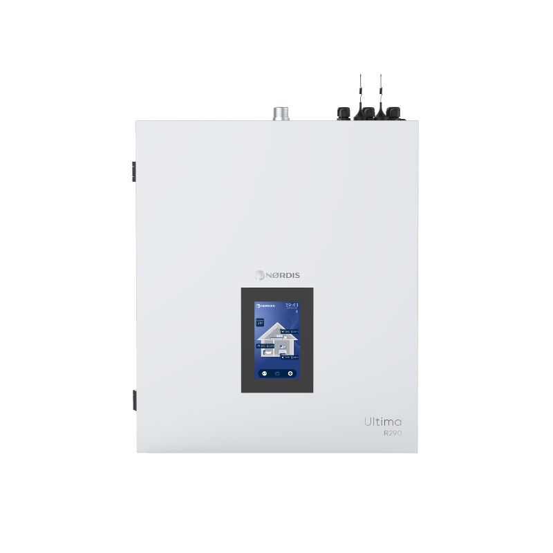 Vonkajšia jednotka NØRDIS Ultima zabezpečuje efektívnu prevádzku tepelného čerpadla aj v náročných podmienkach. Inteligentný riadiaci systém umožňuje nastaviť prevádzkové časy, optimalizovať spotrebu energie podľa denného režimu domácnosti a zabezpečiť maximálny výkon v čase, keď je to najviac potrebné.